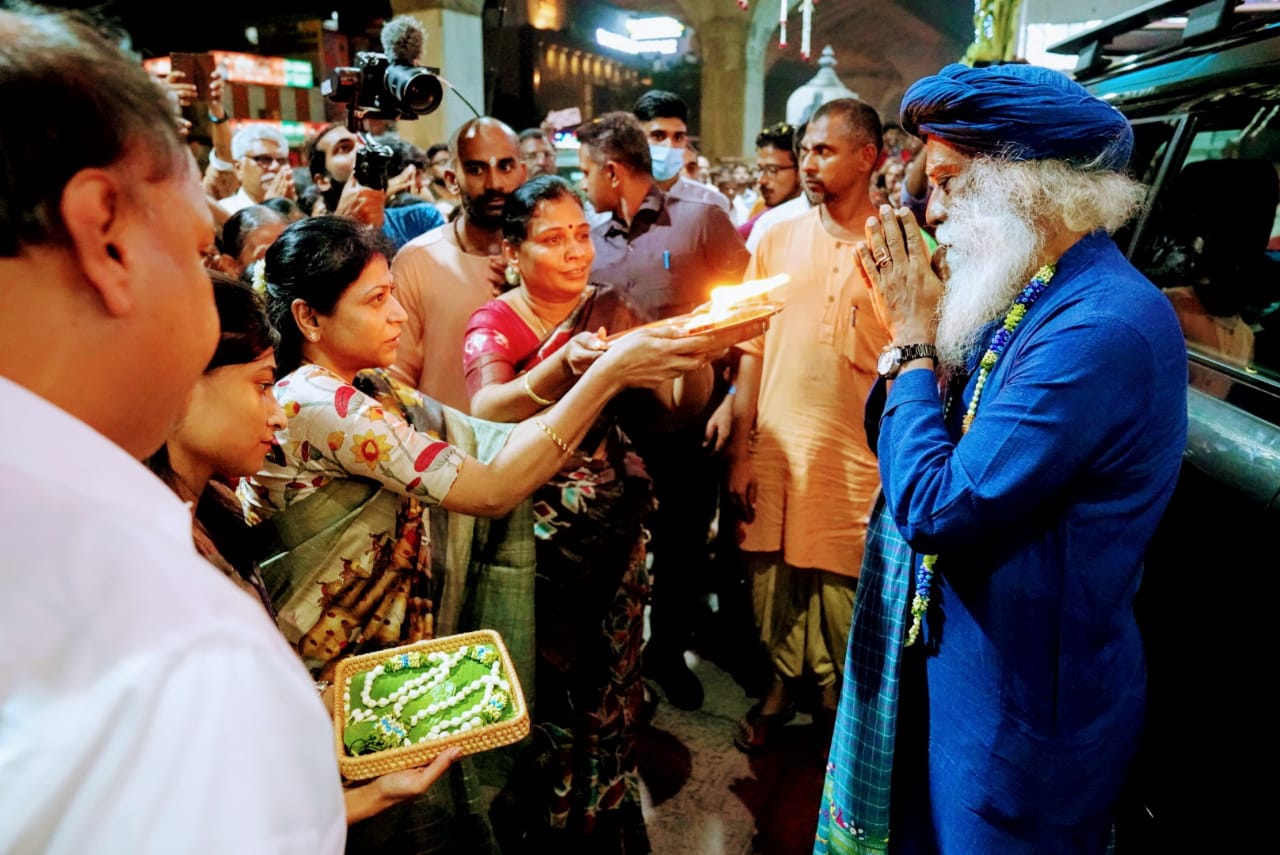 சத்குரு மாலை 6 மணி அளவில் கோவை விமான நிலையம் வந்தடைந்தார். அங்கு மட்டுமே திரண்டு இருந்த ஆயிரக்கணக்கான மக்கள் ஆரத்தி காட்டி வரவேற்றனர்.