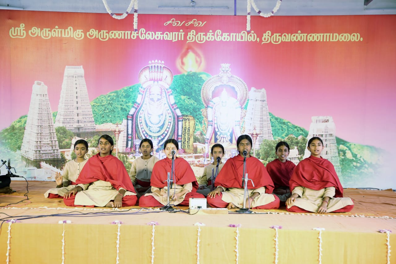 அந்த வகையில் திருவண்ணாமலை அண்ணாமலையார் கோவிலில் அமைந்துள்ள கலையரங்க மண்டபத்தில் சத்குரு குருகுல மாணவர்கள் தேவாரப் பாடல்களை பாடினர். இதில் கோவிலுக்கு வந்த நூற்றுக்கணக்கான சிவனடியார்களும் பக்தர்களும் பங்கேற்று தேவாரப் பாடல்களை கேட்டு, பாடிய மாணவர்களை வெகுவாகப் பாராட்டினர்.