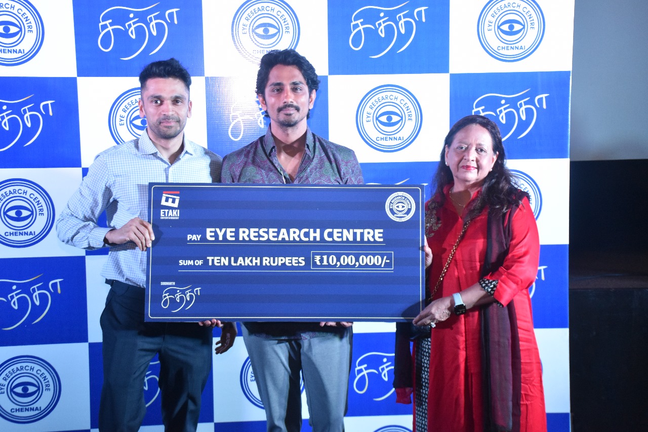 நடிகர் சித்தார்த் நடித்த சித்தா திரைப்படம் இன்று தமிழகமெங்கும் வெளியாகியுள்ளது. இந்த நிலையில், சித்தா திரைப்பட குழுவினருடன் தொண்டு நிறுவனமான ஐ ரிசர்ஜ் சென்டர் இணைந்து கருவிழி அறுவை சிகிச்சைக்காக நிதி திரட்டியுள்ளது.